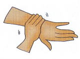 ⑤    親指と手のひらをねじり洗いする